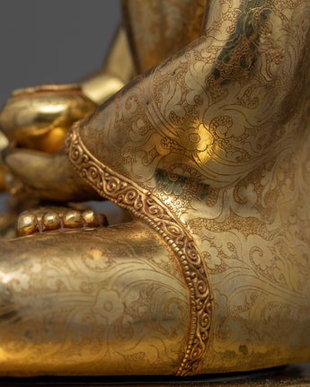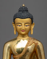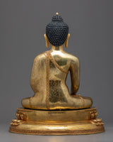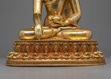 With the skills passed to us from generations of ancient sculpting artists, we have hand-craved this Tibetan Sculpture of Shakyamuni Buddha in our studio with the utmost attention to detail. Using a copper body, we molded the statue's figure, then carved the intricate designs on the statue's robes along with the lotus seat, then gilded the entire statue with genuine 24k gold. The highlight of the statue is the glossy and shine of sculpture. You can use this statue as indoor home décor, for meditational practice, or perform any rituals.