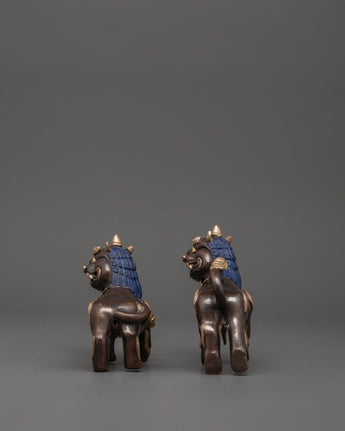 Tibetan Snow Lion Statue Set | Handcrafted Buddhist Guardian Figures
