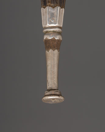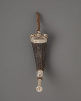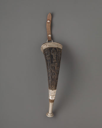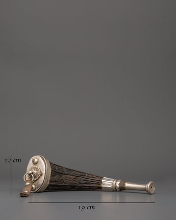 The snuff horn is meticulously crafted, with delicate silverwork that enhances the inherent beauty of the yak horn. The horn is said to have mystical significance, evoking power and perseverance while serving as a channel for energy during ceremonies. The silver decorations and design features remind one of the spiritual journey one takes with each use of the horn. It is more than a decorative piece; it is also a valuable instrument for spiritual activities and meditation experiences.