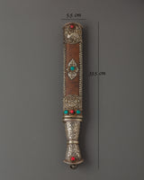 Tibetan Sword with White Metal | Ritual Item with Turquoise and Coral Gems