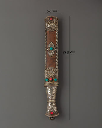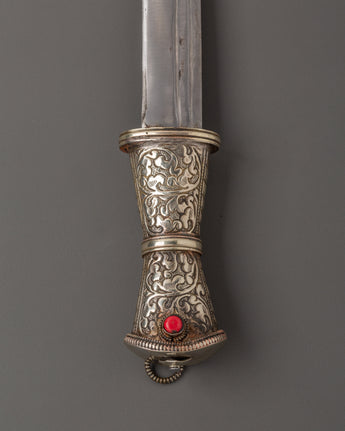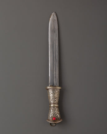 Tibetan Decorative Sword with White Metal | Ritual Weapon for Altar Use