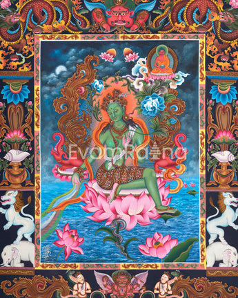 Tibetan Thangka Green Tara Prints | Canvas Digital Prints