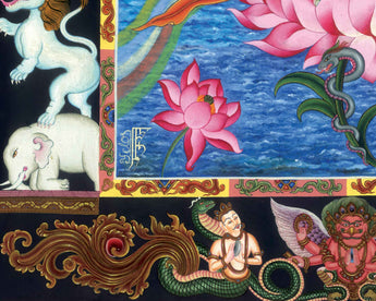 We are delighted to showcase the extraordinary Thangka prints by artist Yelos. With a profound understanding of iconography and remarkable attention to detail, Yelos captures the essence of spirituality in each of their masterful creations. Their skillful brushwork and meticulous use of colors bring these sacred images to life, allowing viewers to immerse themselves in the rich symbolism and profound beauty of Thangka art. By offering his prints on our website, we aim to honor their artistic legacy and provide art enthusiasts with an opportunity to experience the transcendent world of Thangka through their incredible talent.