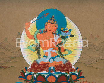 Tibetan Thangka of Wisdom Buddha Manjushri | Guardian of Knowledge and Enlightenment