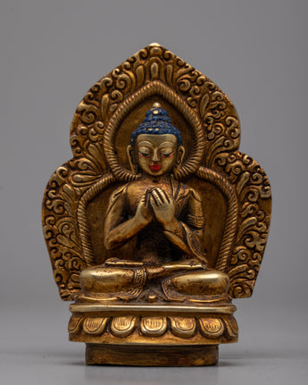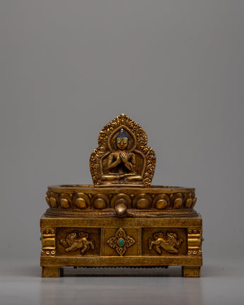 Bring home this exquisite gold-plated Copper stupa, a timeless piece that combines sacred symbolism with extraordinary artistry.