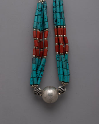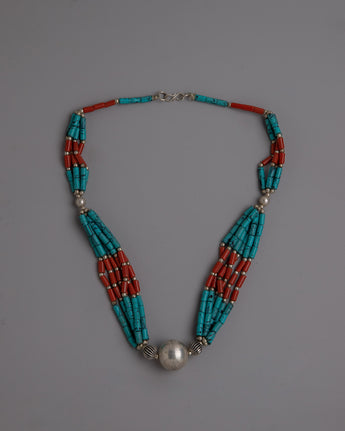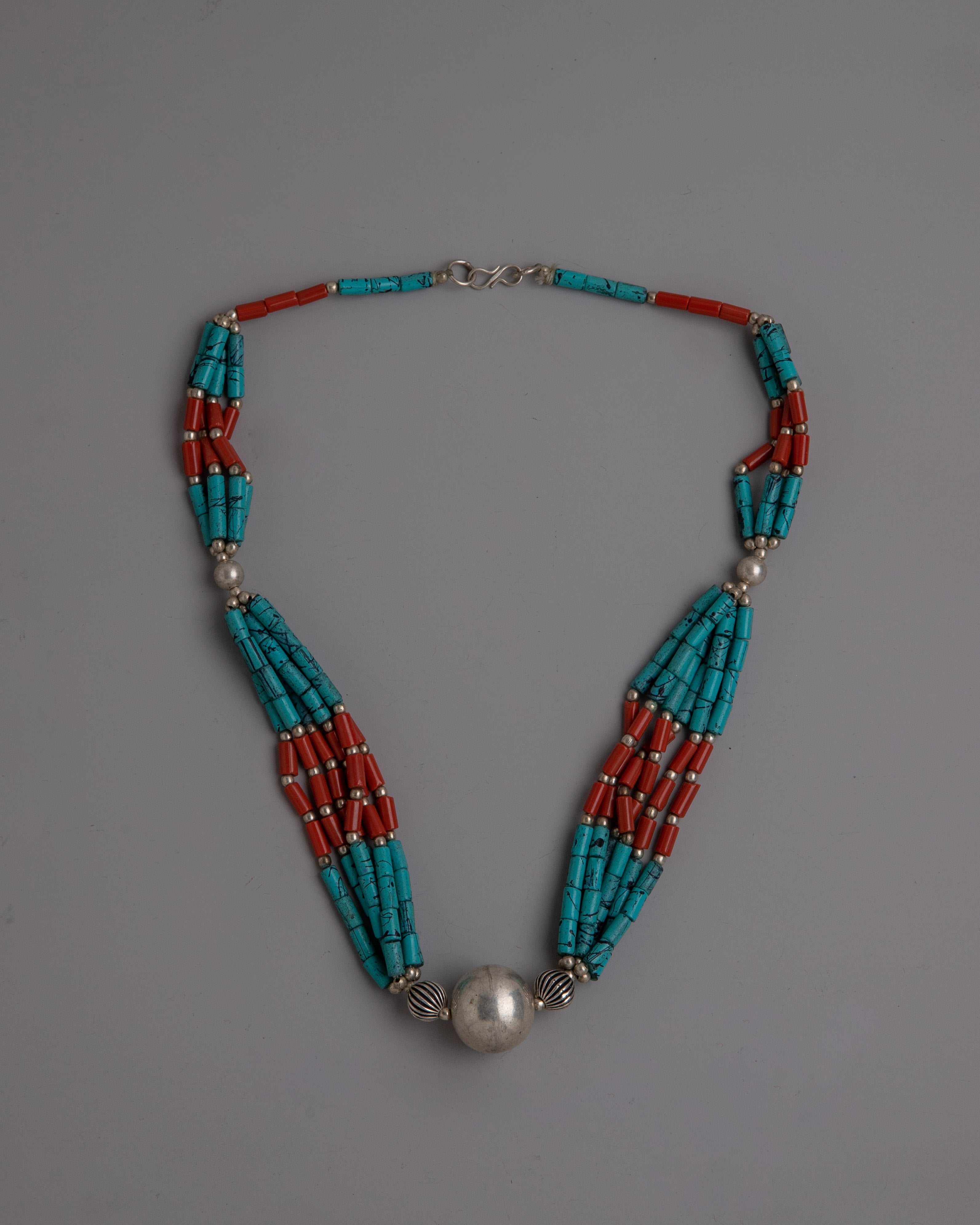Tibetan Turquoise Jewelry Necklace | Intricately Designed Necklace Showing Traditional Tibetan Art