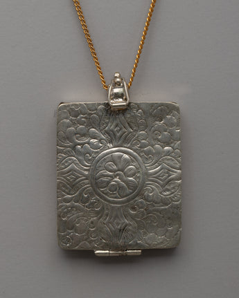 A Buddhist locket is a piece of jewelry designed to hold a small prayer, mantra, or image related to Buddhist practice. The locket may have a design or image of a Buddhist deity, such as the Buddha, or an image of a sacred symbol, such as the lotus flower. It is typically worn as a talisman to remind the wearer of their spiritual path and to offer protection. Some Buddhist lockets are also used as a form of religious devotion and are frequently given as gifts to friends and family members to provide them with spiritual support and blessings.