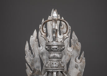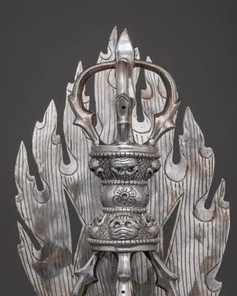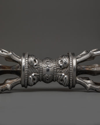 This Vajra, made of iron, has complex decoration that showcases the painstaking craftsmanship that goes into each item. The corresponding stand enhances its appearance as Shri Vajra altar decor, representing the path to spiritual awakening. Whether displayed in your meditation room or used in ritual practice, this Tibetan Vajra holds deep cultural significance and serves as a powerful reminder of inner strength and clarity.