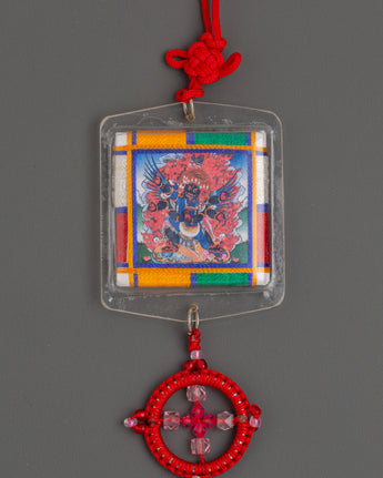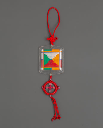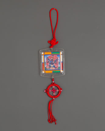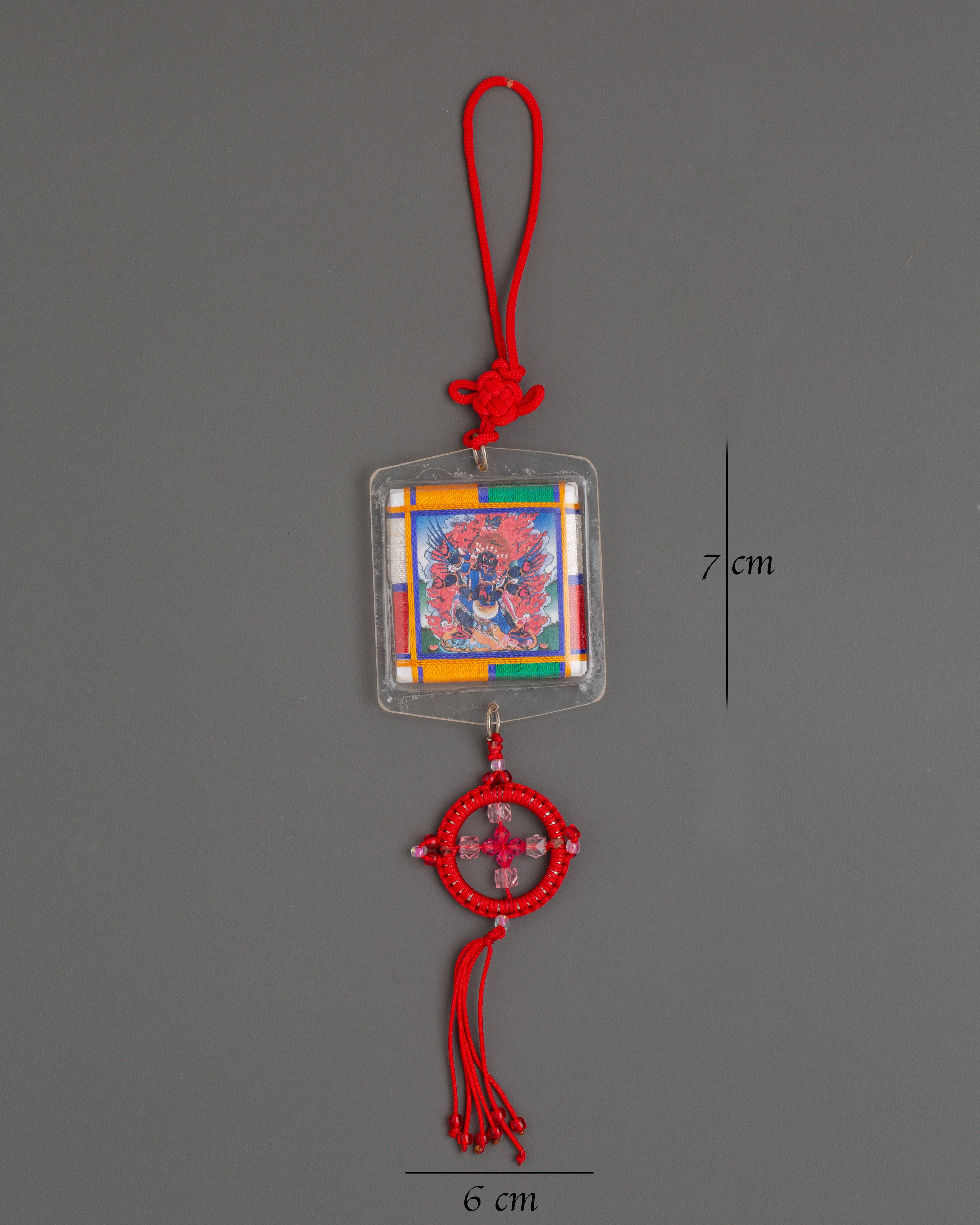 Measuring 7cm in height and 6cm in width, with a total hanging length of 29cm, and weighing 0.024kg, this amulet is lightweight and perfectly designed for hanging in homes, meditation rooms, offices, or vehicles. The intricate sacred imagery within the Vajrakilaya Butti reflects the depth of Tibetan Buddhist tradition, serving as a constant reminder of spiritual strength, protection, and inner transformation. Its striking red thread and symbolic design make it both a spiritual talisman and a meaningful decorative charm.