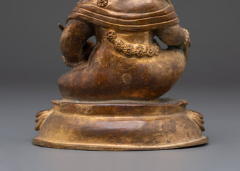This Dzambhala copper statue is full of symbolic detail, capturing the essence of Buddhist art and Himalayan craftsmanship. Dzambhala is adored as the God of Wealth in Tibetan Buddhism, and it is thought that he may assist in alleviating poverty, bring plenty, and remove barriers on one's spiritual journey. With meticulously carved features and a dazzling copper finish, this sculpture combines artistic beauty and spiritual symbolism, making it an exciting addition to any sacred place.