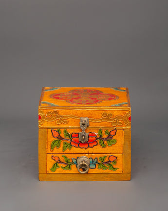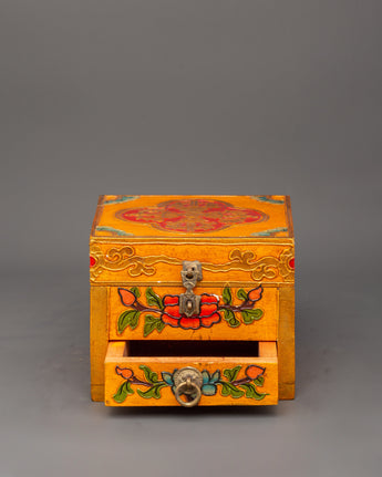 Tibetan Wooden Box with Drawers | Spiritual Storage for Jewelry or Altar Items