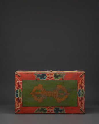 Tibetan Wooden Ritual Box | Hand-Painted Sacred Storage Chest