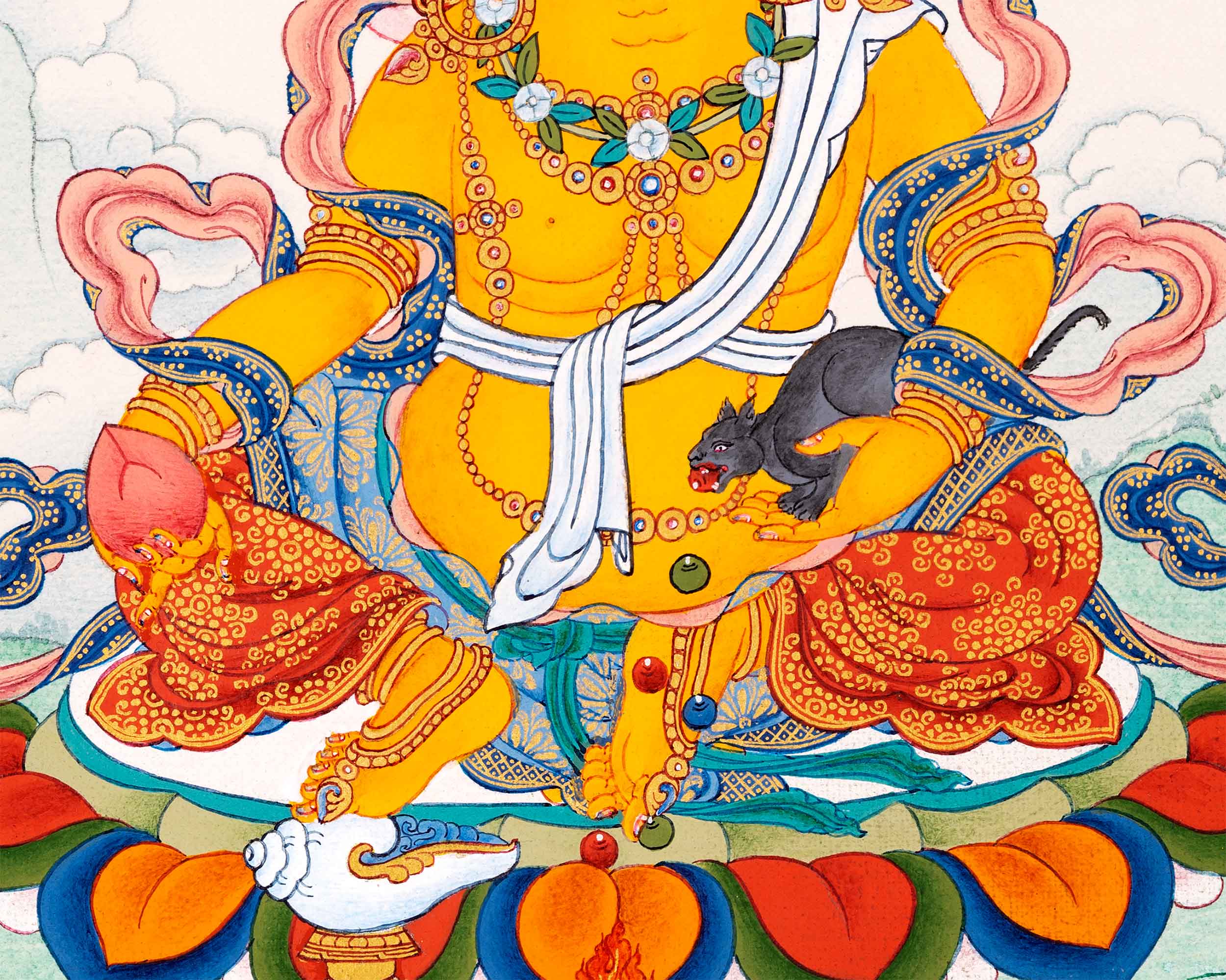 Tibetan Yellow Dzambhala Thangka Painting | The Tibetan Wealth Deity | Buddhist Kubera