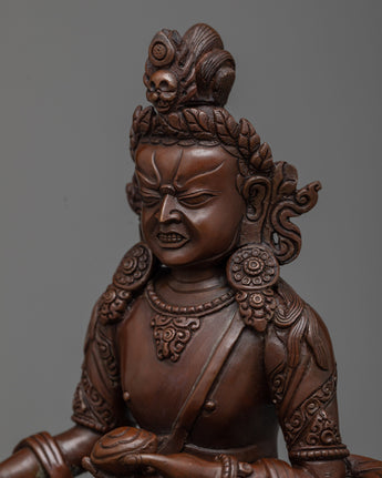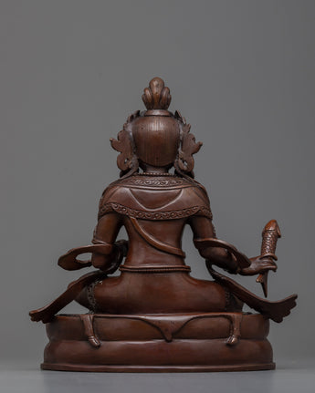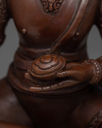 With our Tilopa sculpture, a mirror of profound wisdom and spiritual heritage, immerse yourself in the stories of time. This figure, skillfully carved from oxidized copper, exemplifies Nepalese artists' commitment to preserving history and spirituality. Tilopa's distinctive characteristics are highlighted by the darker, rustic finish, which also speaks volumes about his grounded teachings and sublime journey. While it is a fantastic piece of art, it also softly invites seekers to explore the mystic depths of their own consciousness.