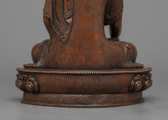 Presenting the serene portrayal of the enlightened being, Shakyamuni Buddha Brown Statue, whose teachings persist in illuminating the route to inner tranquility and emancipation. This 8.6-inch-tall statue, painstakingly fashioned from oxidized copper, embodies the profound simplicity and ageless wisdom of the teachings of the Buddha. Shakyamuni's serene look and meditative pose are highlighted by the sculpture's distinctive texture and depth, which come from the oxidized copper's distinctive brown finish.