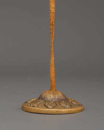 These finely sculpted Tibetan cymbals, weighing 0.426kg (Tingsha) and totaling 0.522kg with the cover, include traditional Buddhist symbols expressing harmony, wisdom, and spiritual awakening. The high-quality leather strap provides an attractive understanding, making them ideal for yoga, mindfulness, and sound healing therapy. These Tingsha cymbals effectively invoke spiritual presence and deep relaxation for personal meditation, space clearing, or ceremonial rites.