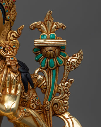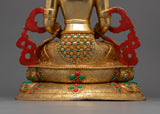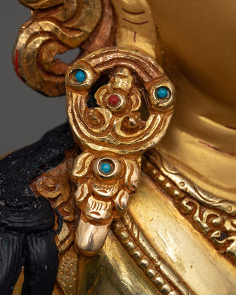 The Traditional Bodhisattva Set Statues, stands at a height of 12.4 inches (31.5 cm) with a base width of 9.1 inches (23 cm), making it a focal centerpiece for any spiritual or decorative setting. Crafted with meticulous attention to detail, this statue set features a copper body adorned with 24K gold gilding, enhancing its radiant and sacred aura. The intricate gold and acrylic paintings further highlight its artistic craftsmanship.