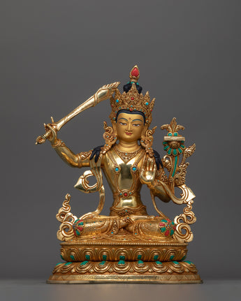 - Manjushri: The Bodhisattva of wisdom, wielding a flaming sword of insight.