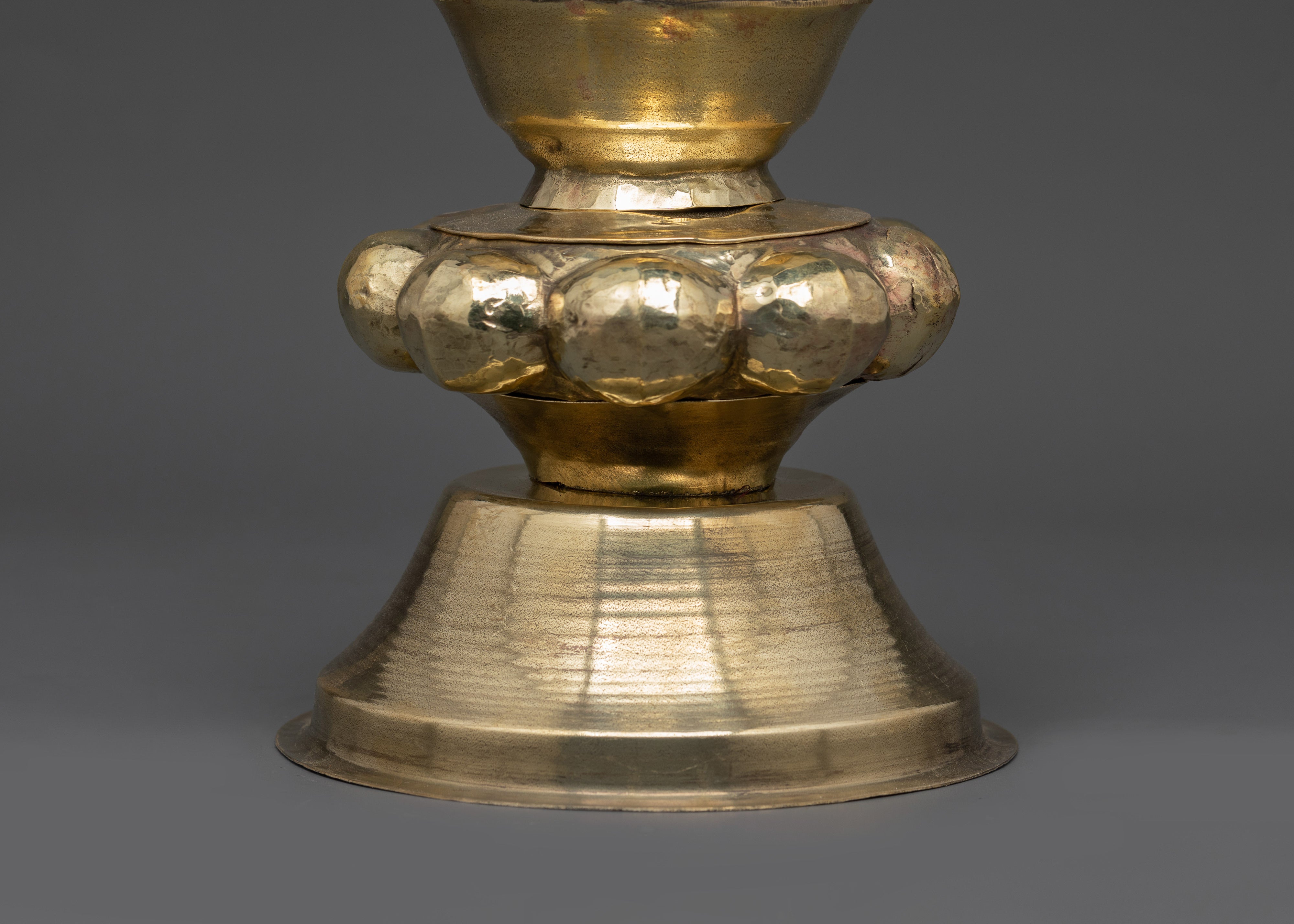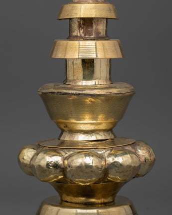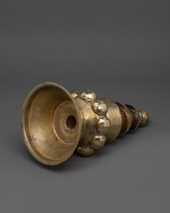 Add a sense of religious architecture to your home with this Traditional Brass Gajur, a temple finial treasured for its representation of spiritual protection and benefits. This Gajur, standing 30 cm tall and made of carefully polished brass, is ideal for embellishing Buddhist altars, home shrines, or meditation rooms.