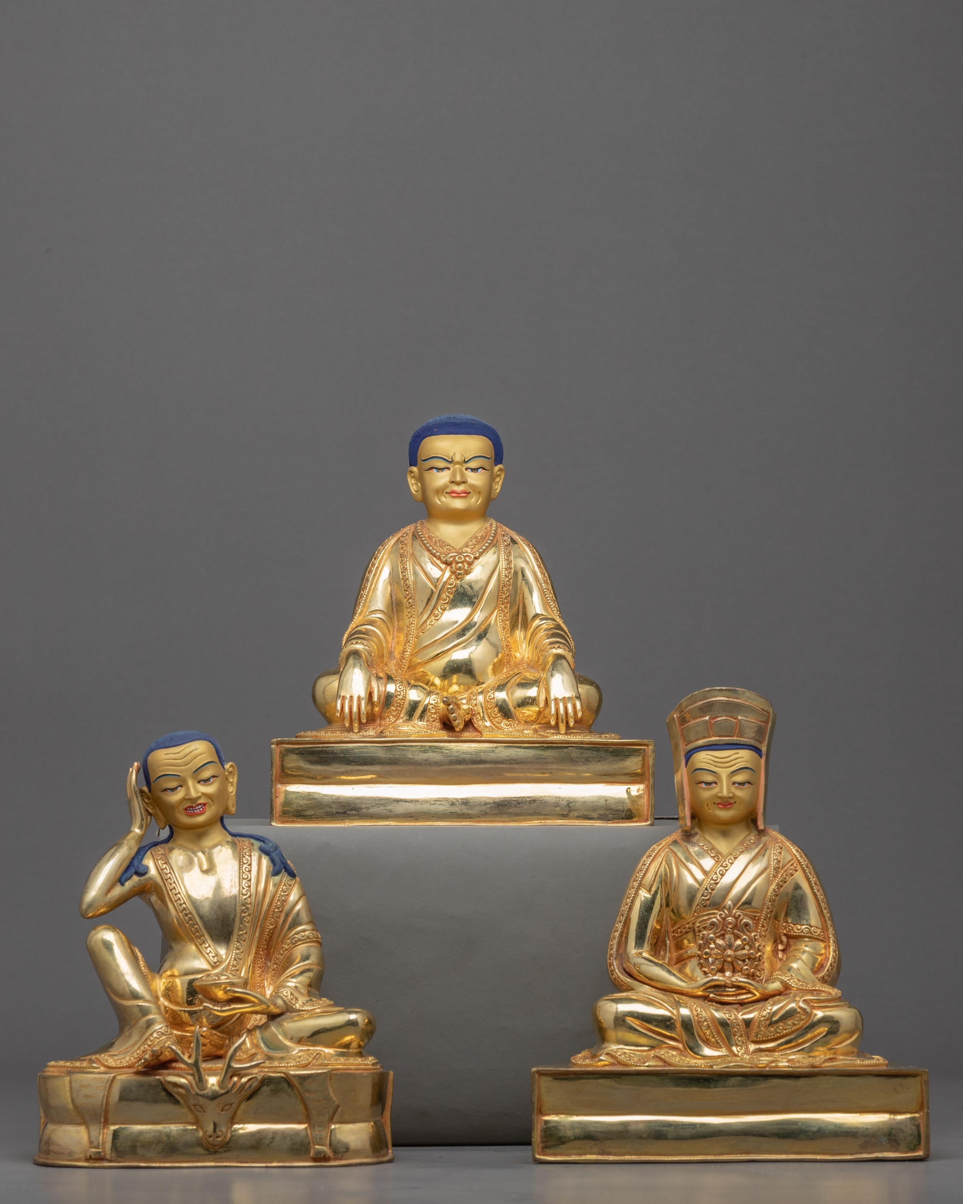 Traditional Buddhist Master Gold Gilded Statue Set | Traditionally Hand Carved Art