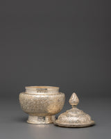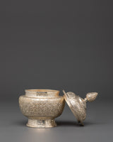 Its classic design reflects expert craftsmanship, making it an indispensable item for practitioners who wish to honor ancient customs and elevate their spiritual environment with genuine authenticity. Beyond serving as a practical container, this rice pot symbolizes devotion, purity, and reverence, enhancing the sanctity of any altar or meditation space. The silver plating adds a refined, luminous finish that complements temple settings or personal shrines. Suitable for individual meditation or communal temple rituals, this offering pot fosters a deeper spiritual connection and invites blessings, making it a treasured addition to any Buddhist practice.