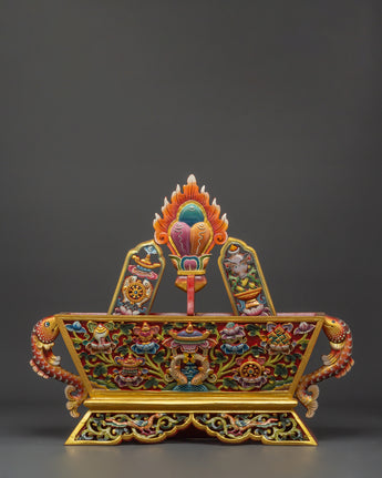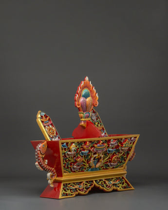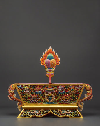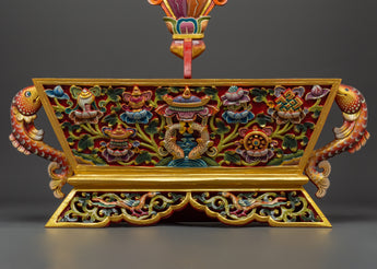 Each Traditional Chemar Box is beautifully created, reflecting centuries of Tibetan creativity and devotion. The wooden construction strongly protects religious things, while the vibrant acrylic colors showcase the detailed carvings and traditional designs. This box is suitable for holding ritual materials, prayer equipment, and personal treasures with spiritual meaning, making it a valuable item for Buddhists and collectors.