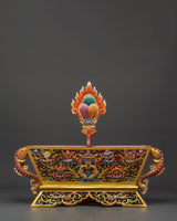 This handcrafted Tibetan Chemar Box is portable and elegant, measuring 46cm x 55cm and weighing 1.94kg. Enhance your holy area with this authentic Himalayan ritual box, which combines traditional craftsmanship with spiritual function. Whether for meditation, altar decorating, or as a unique present, this Traditional Chemar Box is an essential spiritual container.