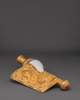 This Traditional Conch Shell combines craftsmanship with rich decorative elements, making it a standout piece for any home or spiritual space. Crafted from copper and beautifully gold-plated, the shell is further enhanced with artificial stones like turquoise and coral, This conch shell with a dragon pattern is ideal for collectors, decorators, or anybody looking for a meaningful home décor piece. It will make a strong statement in any environment. Whether exhibited in a living room, office, or as part of a selected collection, it gives a sense of elegance and mythological significance to any setting. The combination of natural elements and mythical artistry transforms this conch shell into a sign of power and good fortune, perfect for individuals who value exquisite craftsmanship and cultural symbolism.
