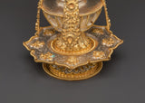 The Buddhist Ritual Long Life Vase, also known as the Tibetan Ayur Kalasha, is a sacred vessel symbolizing longevity, health, and prosperity. Used in Tibetan Buddhist rituals, it is believed to invoke the blessings of longevity deities like Amitayus and White Tara, who are revered for their power to protect and extend life. The vase is traditionally filled with sacred substances, such as herbs, grains, and mantras, to channel divine energy and promote well-being and vitality. It is a powerful tool in ceremonies to overcome obstacles and invite auspicious blessings. Whether placed on an altar or in meditation, the Long Life Vase represents a connection to spiritual vitality, offering protection and guiding one toward a balanced and harmonious life.