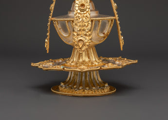 Elevate your spiritual atmosphere with this Traditional Copper Body Life Vase, which is skillfully handcrafted to symbolize elegance and divine symbolism. This life vase is 31cm tall and 17cm wide, crafted from copper and finished with a rich gold plating. It weighs 1.18kg, giving it a strong presence. This copper life vase is ideal for rituals, altar decorations, or as a special centerpiece. It represents the essence of life and spiritual vigor, making it a valued artifact in both traditional and modern spiritual practices.