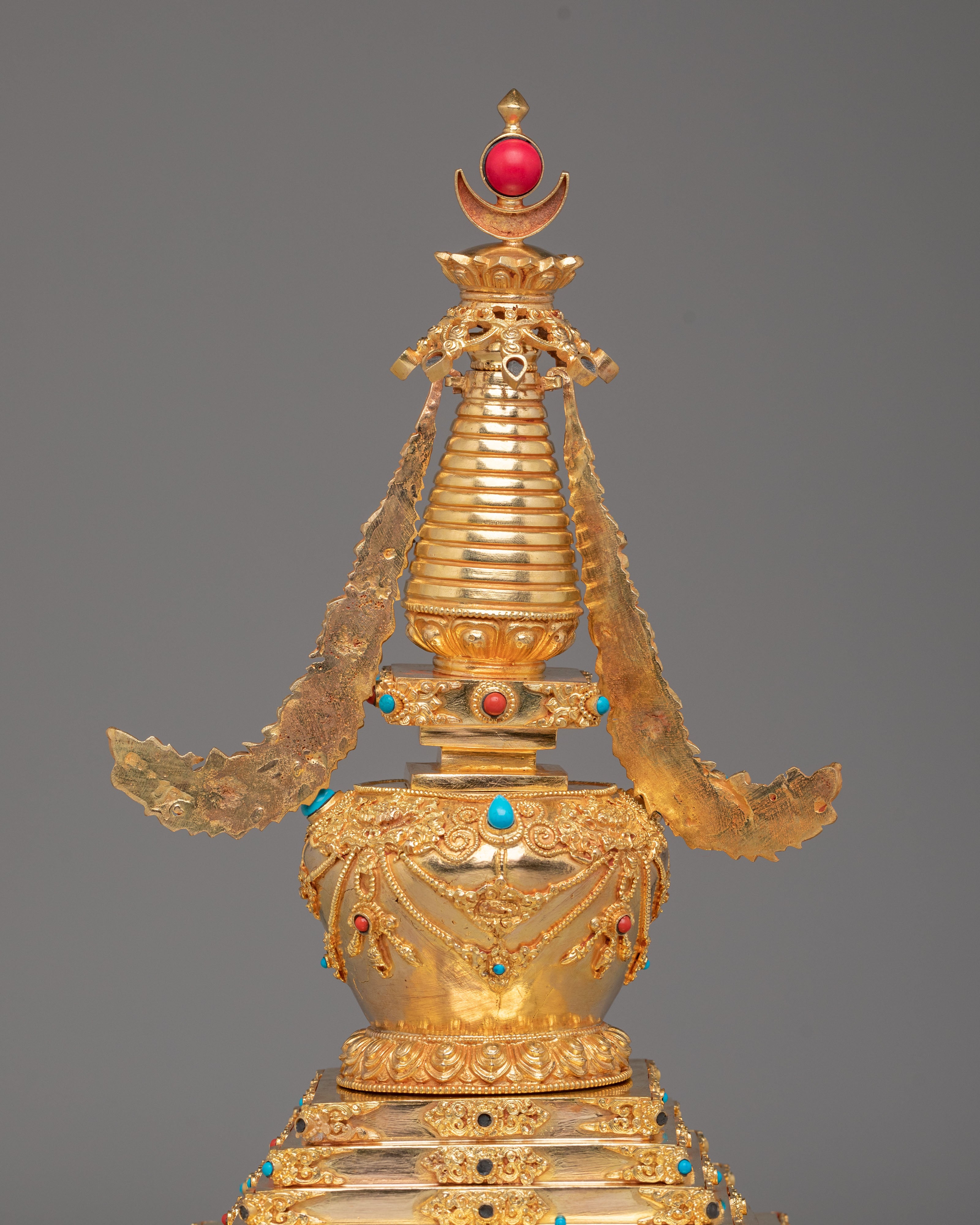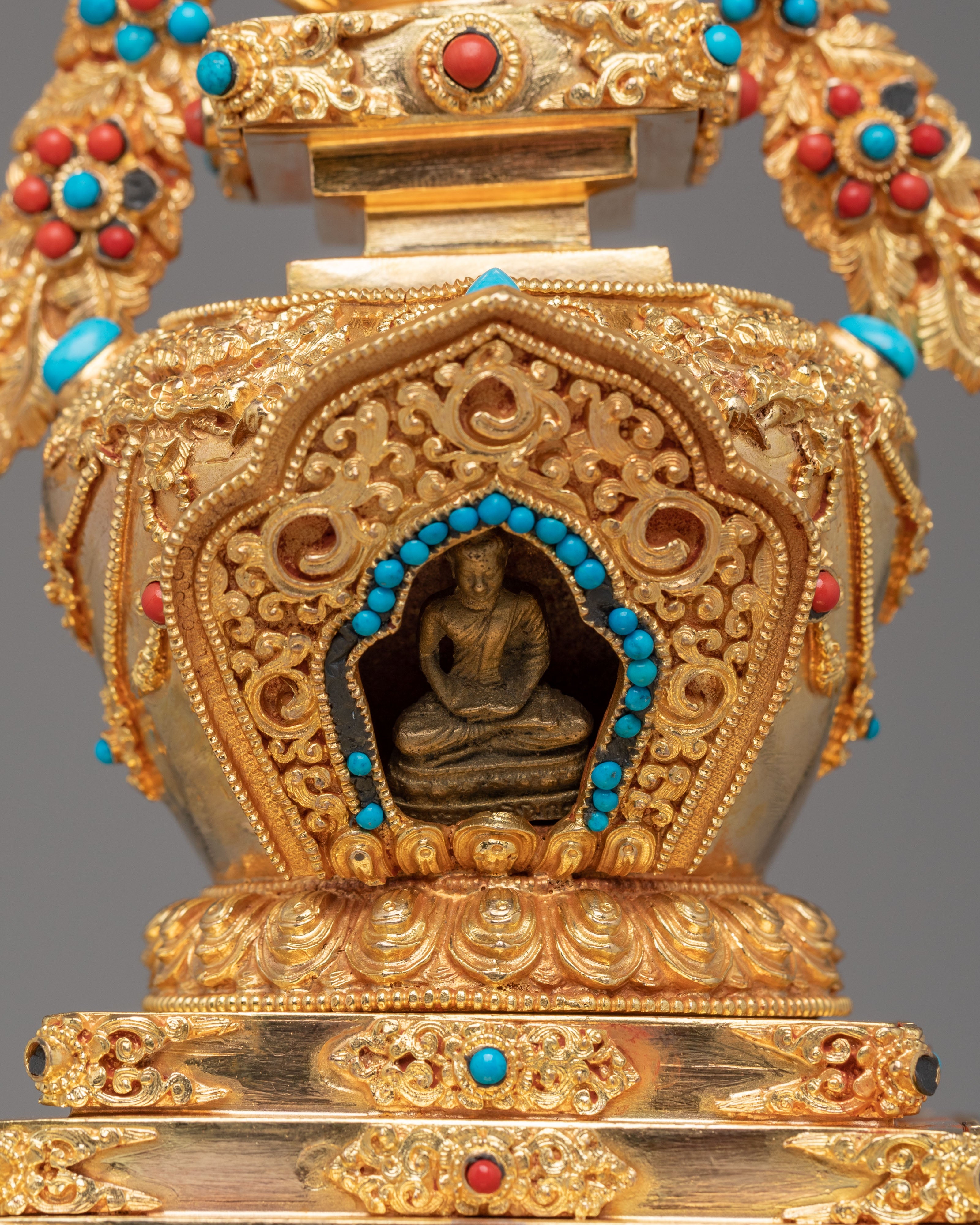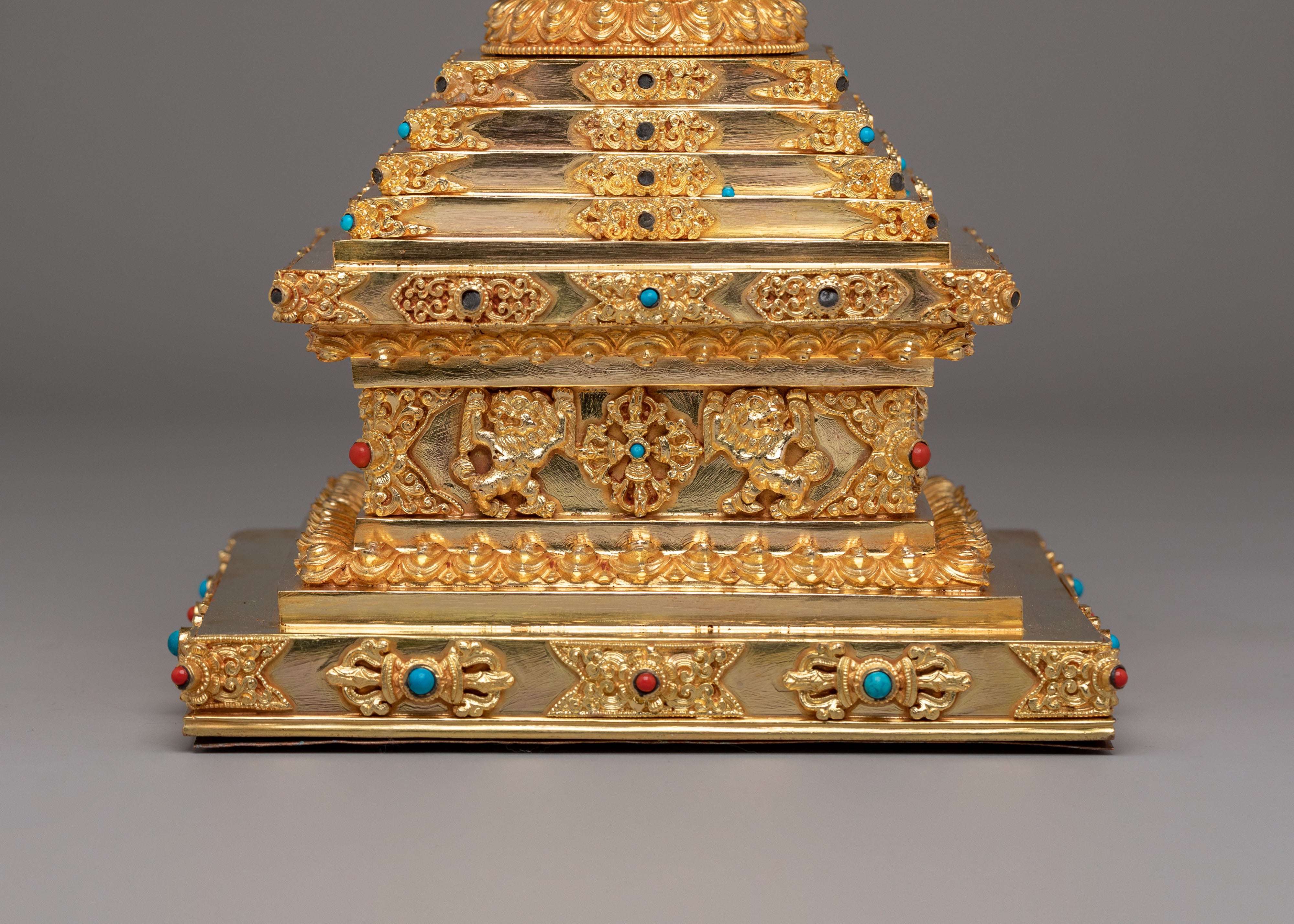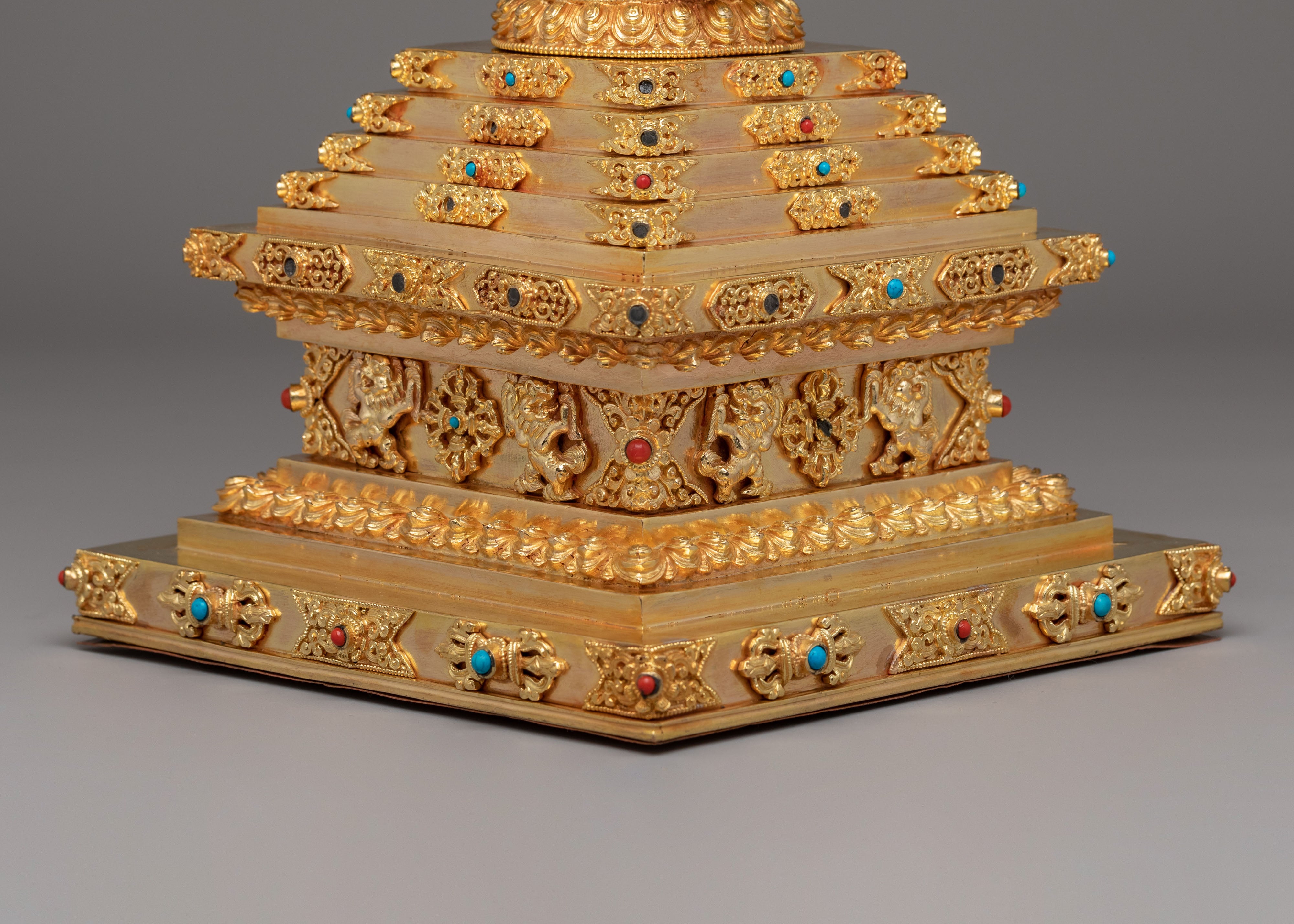 Handcrafted Traditional Jangchub Stupa with Gold Plating & Gemstones