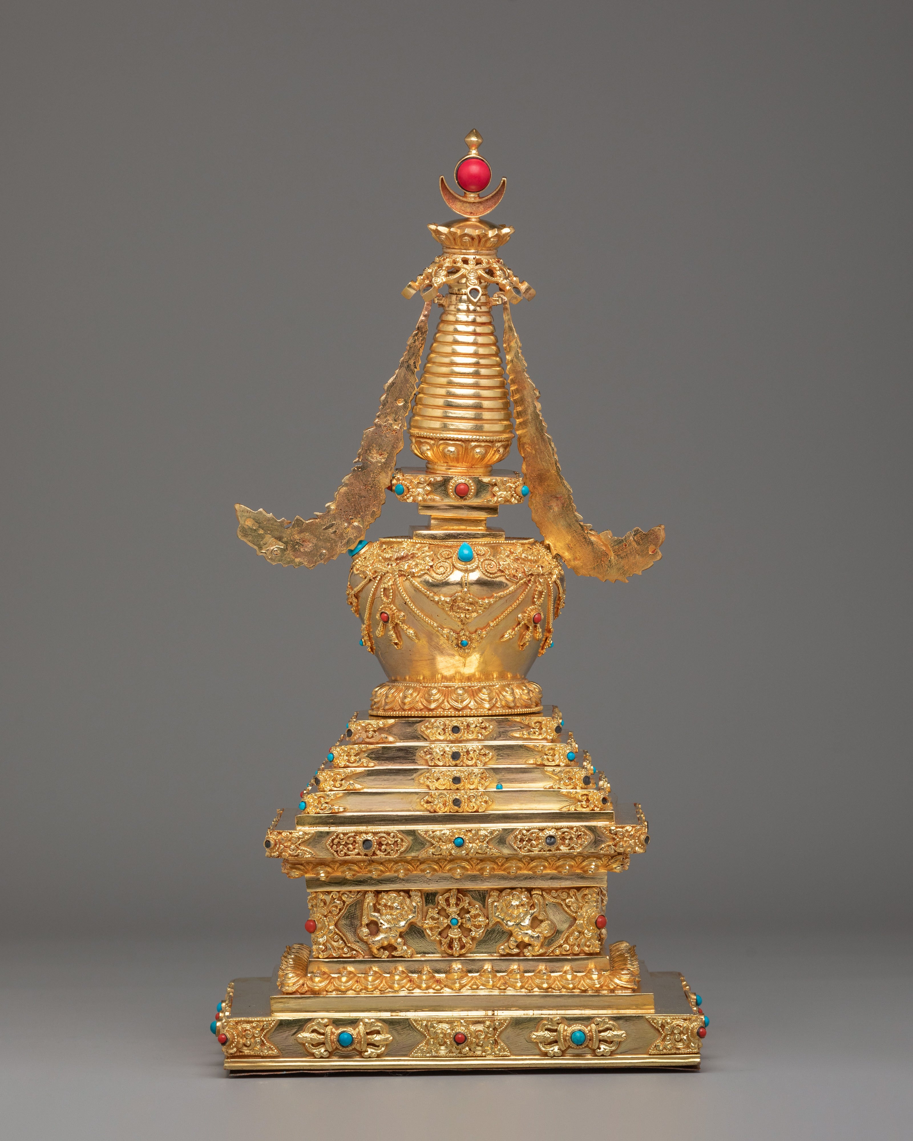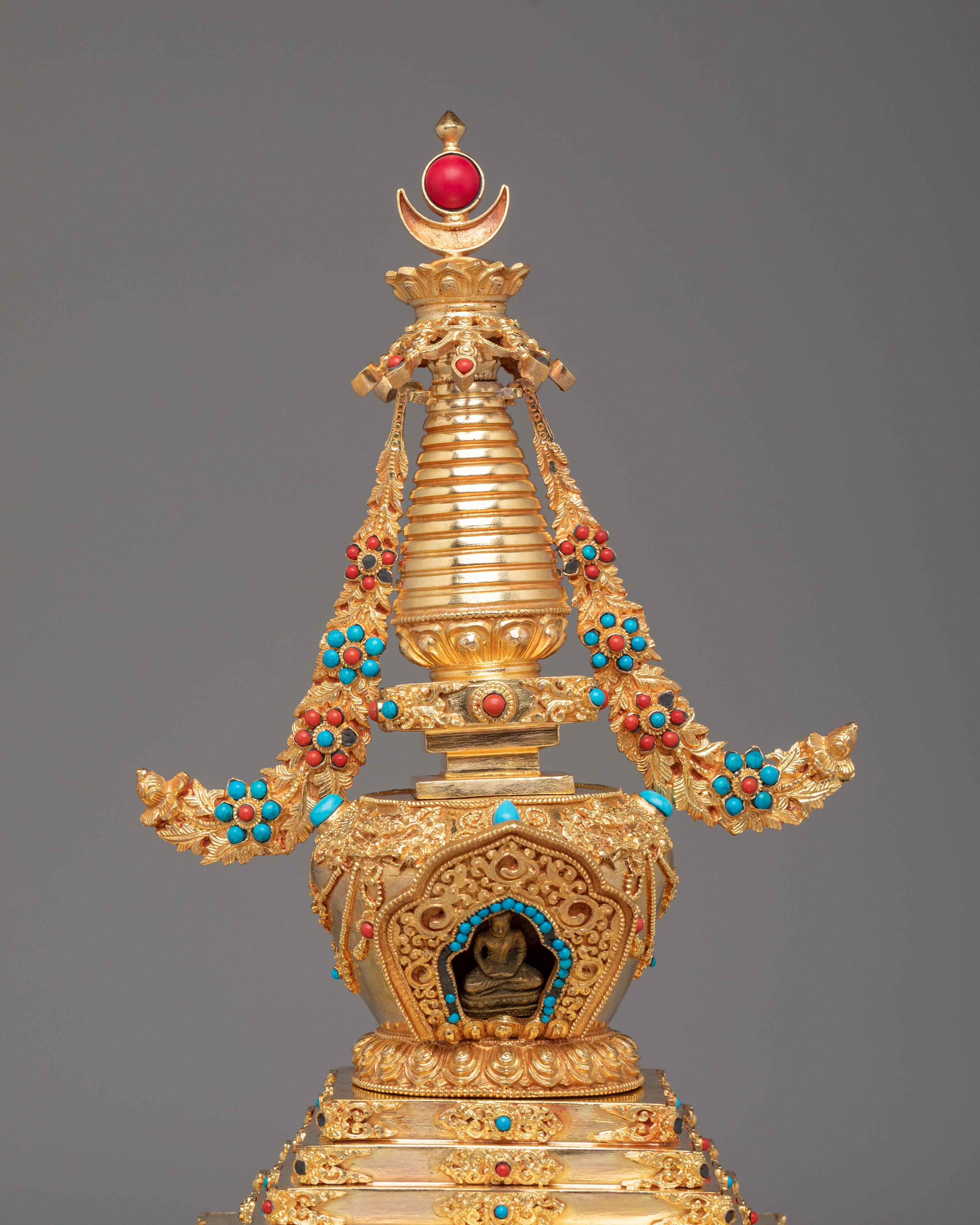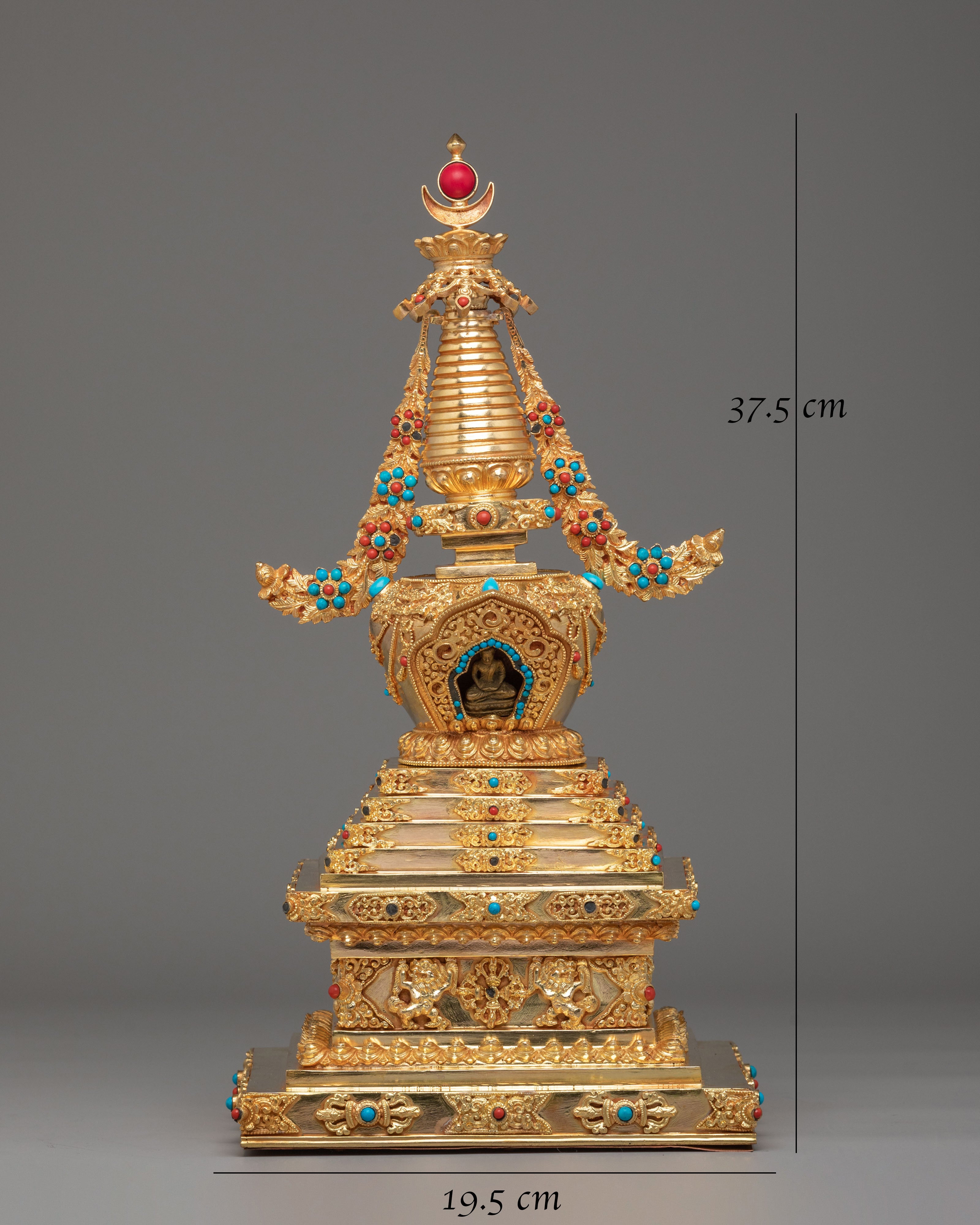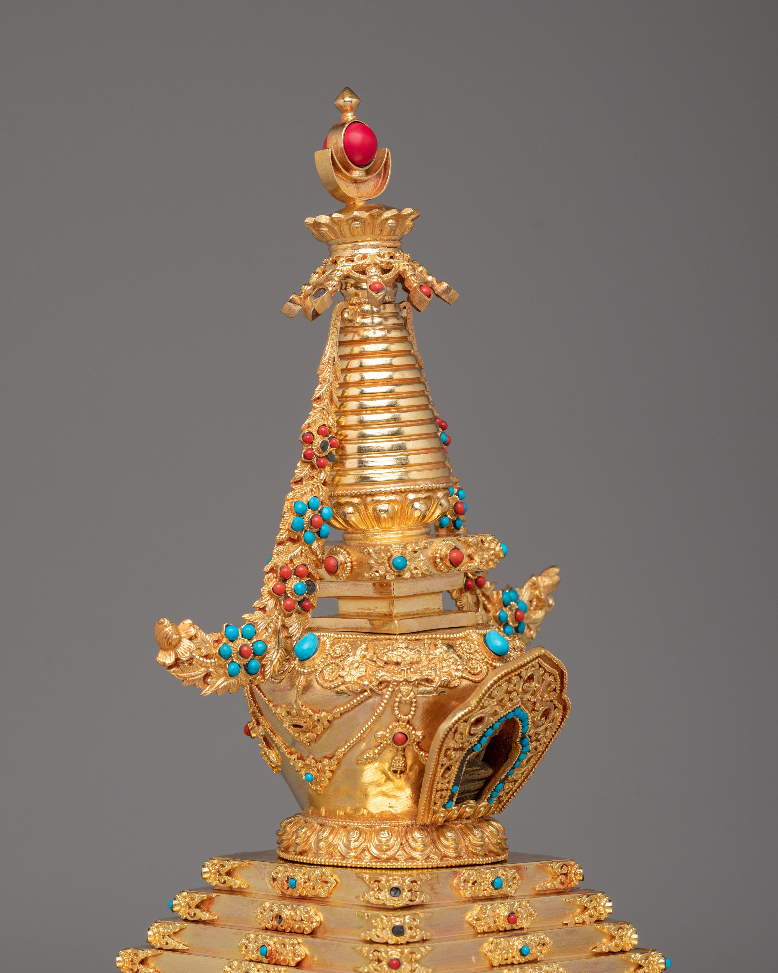 Handcrafted Traditional Jangchub Stupa with Gold Plating & Gemstones
