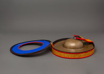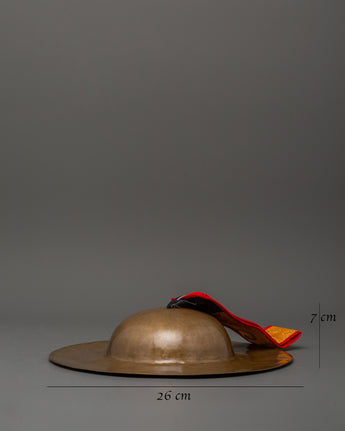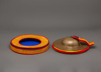 This 26cm Traditional Jhyamta Cymbal Set is a sacred instrument for Tibetan and Nepalese rituals, sound therapy, and monastic ceremonies. It is expertly fashioned from Kansa and produces a powerful sound that purifies the environment and enhances spiritual energy. These portable cymbals, standing 7 cm tall and weighing 1.41 kg each, are precisely balanced for ceremonial or peaceful sound trips.