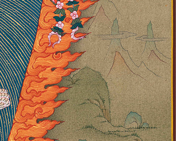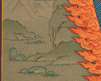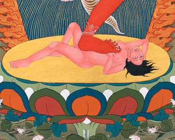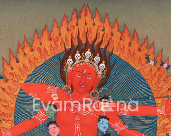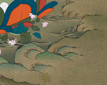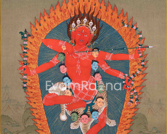 In Kurukulla Thangka Art, Kurukulla's divine face is meticulously made on a canvas made entirely of cotton, offering a base that is both durable and charged with spiritual meaning. Bright acrylic colors that have been thoughtfully chosen to capture Kurukulla's intense and alluring personality adorn the canvas, producing a visual symphony that personifies the transformative power of desire. Each stroke of acrylic color infuses the artwork with life, showcasing the goddess's dynamic presence. Delicately adorned with real 24K gold, Kurukulla's divine radiance is enhanced, signifying the transcendent aspects of her empowerment and love.