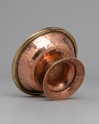 Discover the traditional Serkyem set's timeless beauty and cultural diversity. It is expertly handcrafted with a copper body. This set, which stands erect at a height of 14 cm, honors a priceless custom and gives your ceremonial rituals a refined touch.