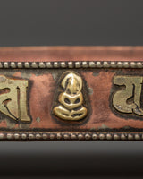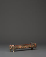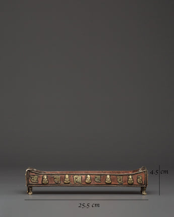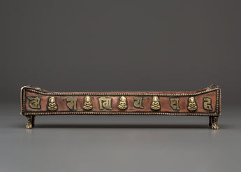 This Traditional Spiritual Incense Burner will bring a spiritual beauty to your sacred place. This beautifully constructed incense holder, measuring 4.5 cm tall and 20.5 cm wide, is made of copper and brass, giving it a traditional Tibetan appearance. It weighs about 0.090 kg and is portable and strong, making it ideal for meditation, prayer, or ceremonial acts. He intricately carved the Om Mani Padme Hum mantra down the sides, symbolizing compassion and purity, establishing peace and spiritual balance in your home.