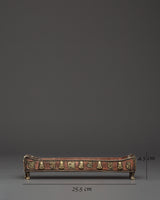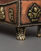 This Tibetan incense tray is a proper incense holder and a lovely decoration for any Buddhist altar or meditation area. The copper body with brass decorations creates a complex look, emphasizing the meticulous craftsmanship. The burner is ideal for holding stick or cone incense, as it safely gathers ashes while allowing aromatic smoke to rise. Whether used in daily rituals or as a one-of-a-kind addition to your spiritual collection, this Traditional Spiritual Incense Burner captures the essence of Tibetan culture and devotional practice.