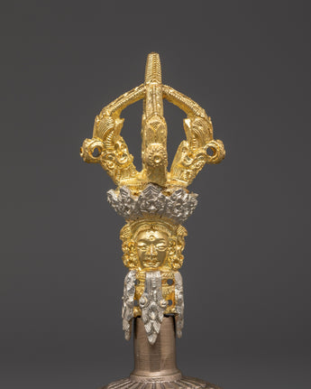 The Vajra, which is 16 cm long and 8.5 cm wide, weighs 0.110 kg and is masterfully fashioned from bronze. Its shape represents the indestructible essence of compassion and skillful methods of Buddhist teachings. The bell and vajra represent the union of wisdom and method, creating a harmonic energy suitable for meditation, mantra recitation, and holy rites. The set's entire combined weight is 0.400 kg, making it light to carry while suitable for ceremonial usage.