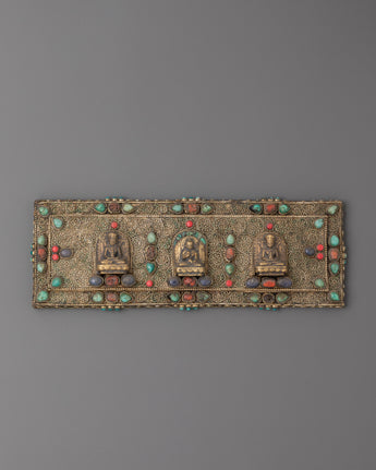 Perfect for collectors and spiritual enthusiasts alike, this Tibetan Buddhist Prayer Book embodies cultural depth and sacred symbolism. The use of coral and turquoise reflects traditional Tibetan aesthetics, while the detailed metalwork enhances its visual appeal. This exquisite artifact is an ideal representation of Tibetan religious art and history, making it a standout piece for those interested in Buddhist culture and craftsmanship.