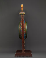 This Traditional Tibetan Drum is a beautiful and spiritual artifact, imbued with profound cultural importance. The drum, measuring 143.5 cm in height and 87 cm in width, is distinguished by a 54 cm diameter Dhangro, rendering it a remarkable enhancement to any spiritual environment. This drum, meticulously manufactured, showcases traditional Tibetan artistry, featuring a striking dragon motif portrayed in striking colors. This drum, utilized in ceremonial rites or as an elegant decorative item, symbolizes the profound cultural legacy of Tibet and imparts a sense of sanctity to your surroundings.