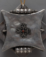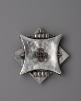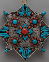 With our exquisite silver Traditional Tibetan Ghau Box, you can truly experience the grace of Tibetan craftsmanship. With its 10.3 cm height and 10.3 cm breadth, this Ghau box is a monument to the precision and spiritual legacy of Tibetan design. The box's surface is carefully etched with semi-precious stones, such as coral and turquoise. These stones, which stand for protection and enlightenment, not only improve its aesthetic appeal but also have profound spiritual meaning.