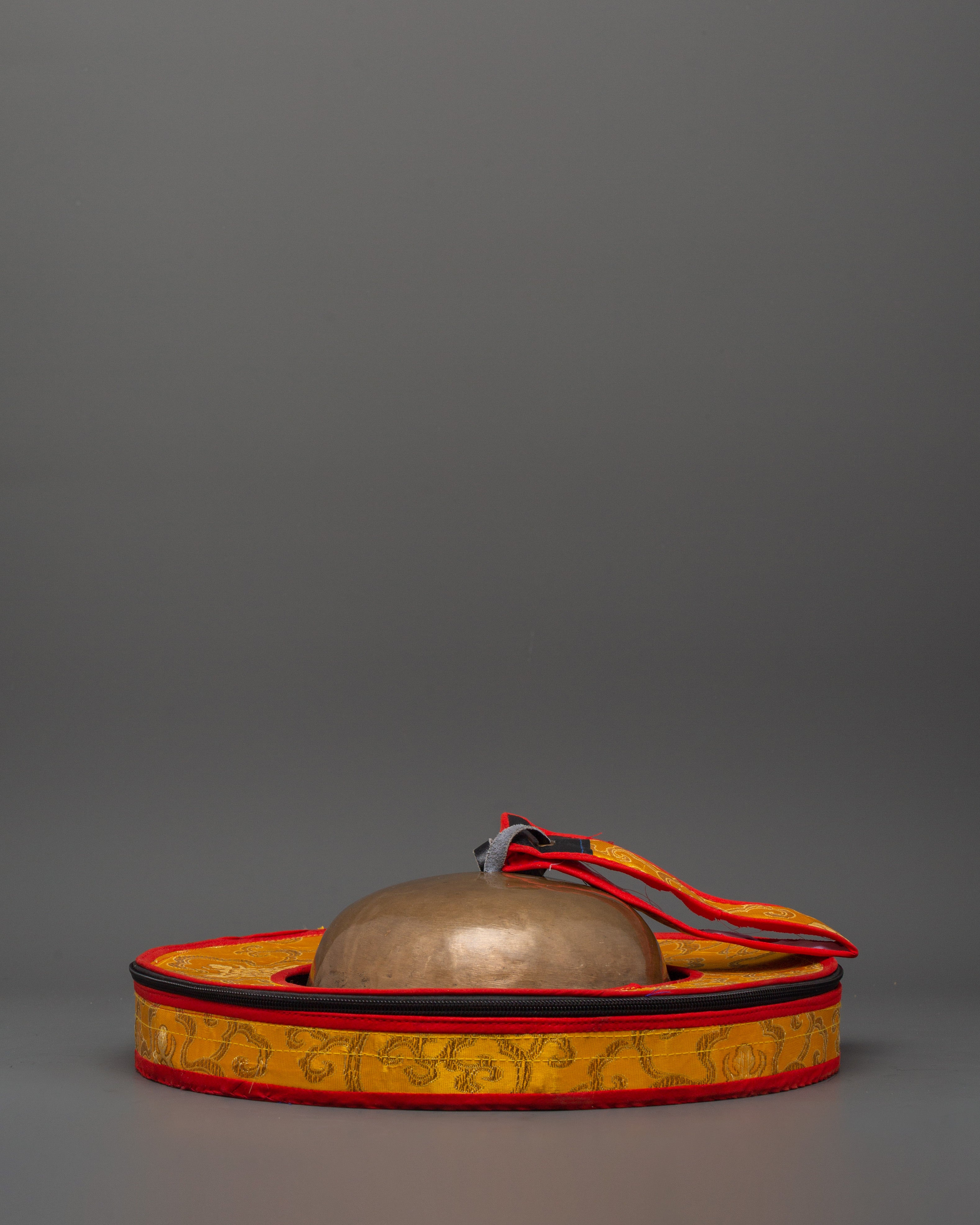 Included is a brightly designed protective case lined with fabric featuring traditional designs. This protects the instrument and elevates its status as an appreciated ceremonial object. With a weight of 2.11kg, the Jhyamta attracts attention technically and visually. Whether you're a ceremonial performer, spiritual practitioner, or sound healer, this Tibetan cymbal gong connects you to decades of sacred sound traditions.