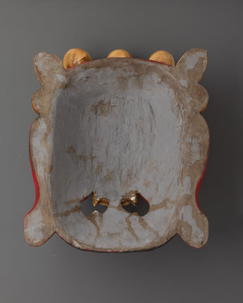 This Traditional Tibetan Mask Decor will give your house a striking, spiritual touch.  This mask, traditionally used in Tibetan and Himalayan rites, is hand-carved from wood and delicately hand-painted with vibrant acrylic colors, embodying the fierce look of a protective deity. With striking red hues, vivid eyes, and symbolic flames, it’s a perfect addition for those who appreciate spiritual art and cultural heritage. Measuring 31cm in height and 25.5cm in width, this lightweight 0.70kg wall hanging makes a distinctive statement in meditation rooms, yoga studios, or ethnic-themed interiors.