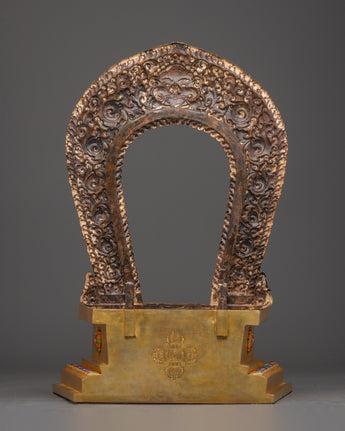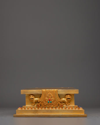 This Traditional Tibetan Throne is a stunning expression of Himalayan craftsmanship and Buddhist devotion. Designed as a regal pedestal for a sacred statue, it represents honor, reverence, and spiritual authority. Crafted from copper and gold-plated, this throne radiates divine brilliance, making it a perfect foundation for Buddha statues or other deities. The meticulous carvings and ornate patterns reflect centuries-old Tibetan artistry, blending symbolism and sacred elements to elevate your spiritual display.