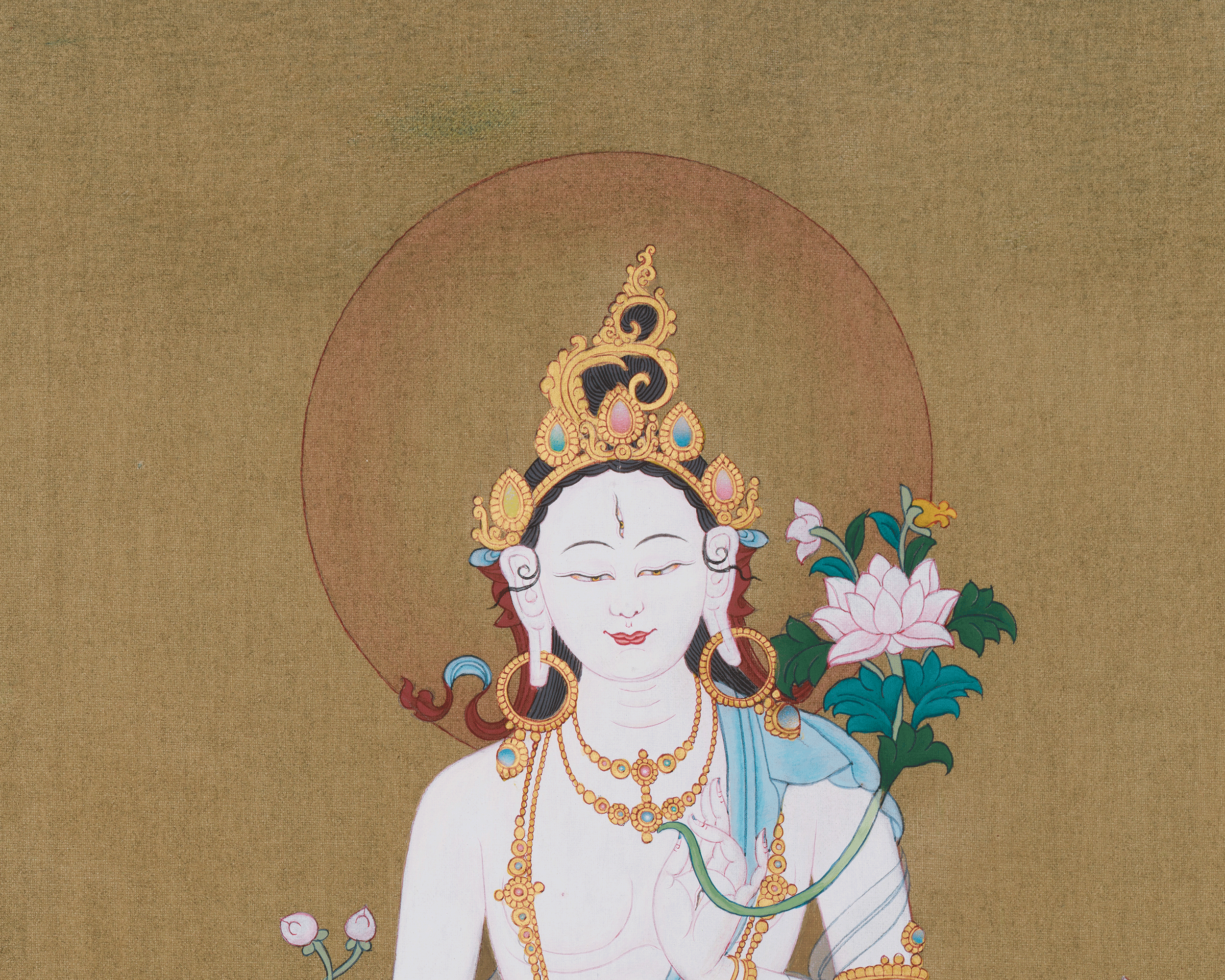 Hand-Painted Traditional White Tara Painting | Female Bodhisattva | 24K Gold, Acrylic Colors