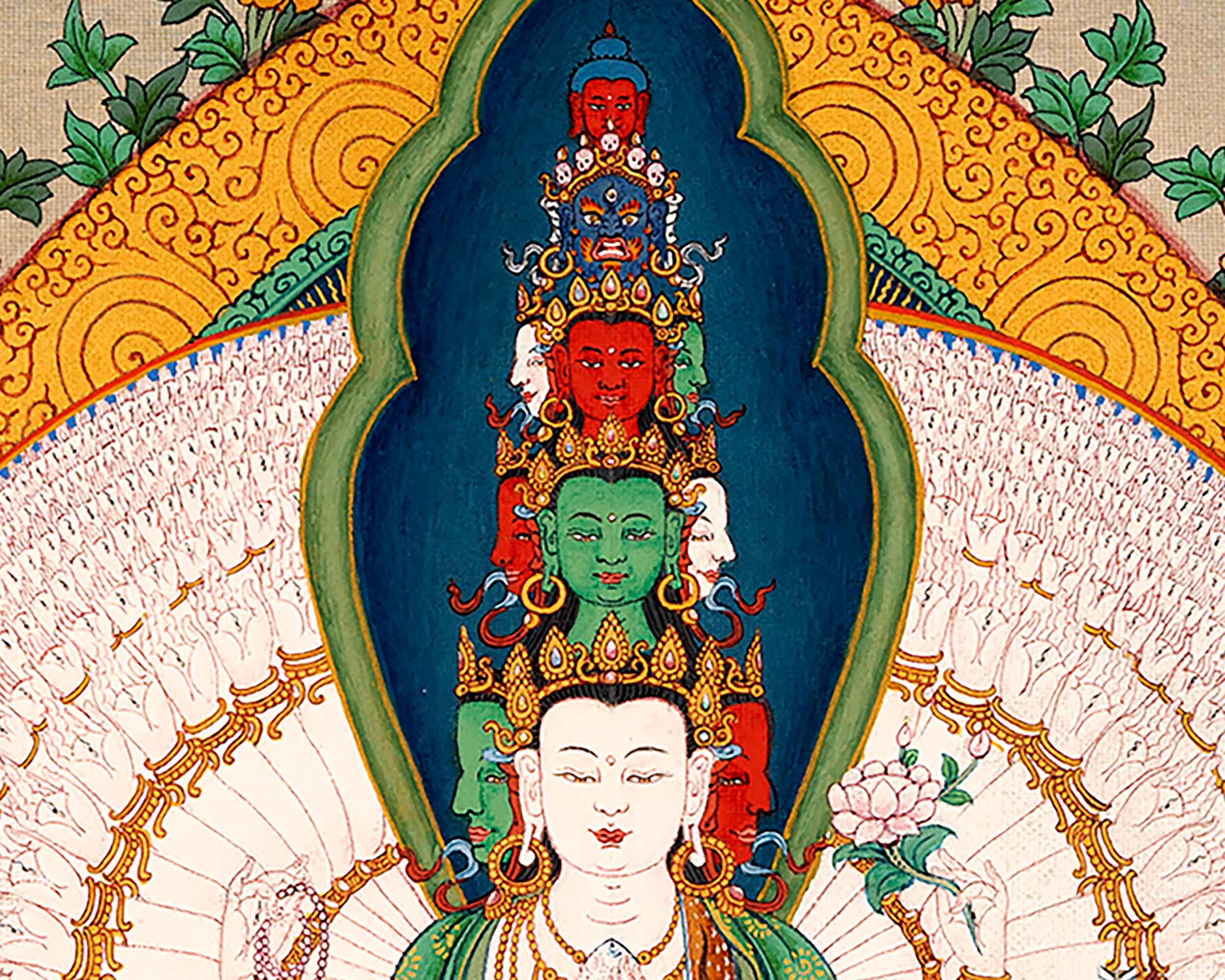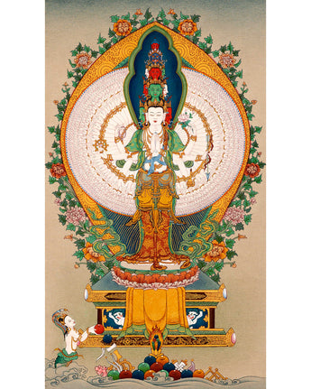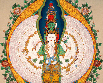 Traditionally Hand-Painted Chenrezig 1000 Arms Thangka | Himalayan Buddhist Sacred Art