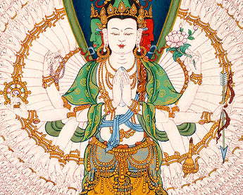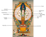 Traditionally Buddhist Hand-Painted Chenrezig 1000 Arms Thangka