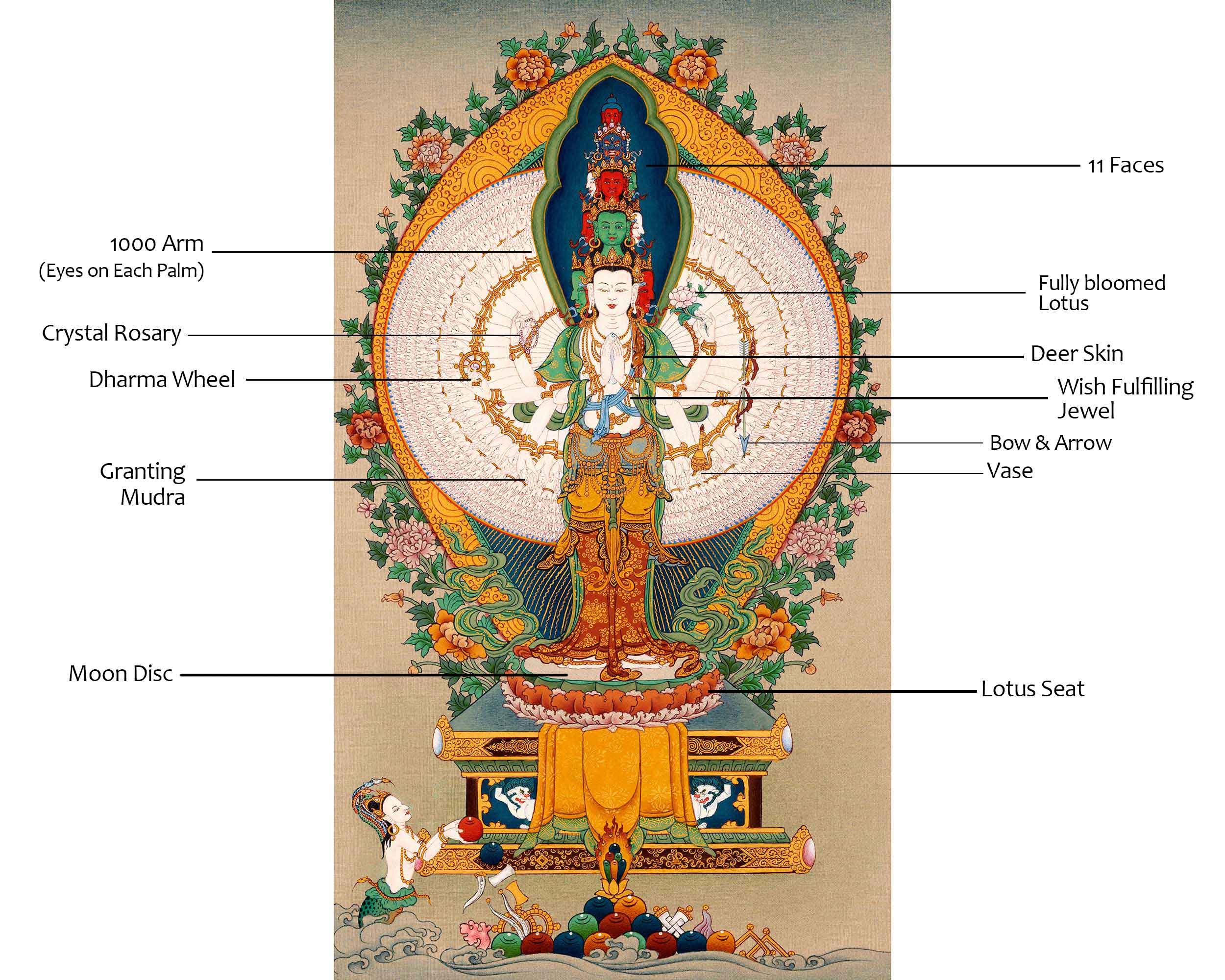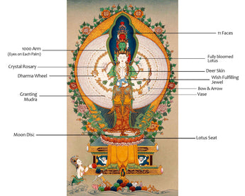 Note: 1000 Armed Chenrezig Thangka is an original painting from Enlightenment Studio, located at Boudha Stupa.
