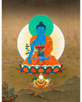 Traditionally Hand-Painted Medicine Buddha Meditation Thangka | Tibetan Art For Healing Buddha Practices