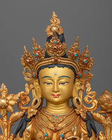Traditionally Handcarved Green Tara Statue | Feminine Buddhist Protector